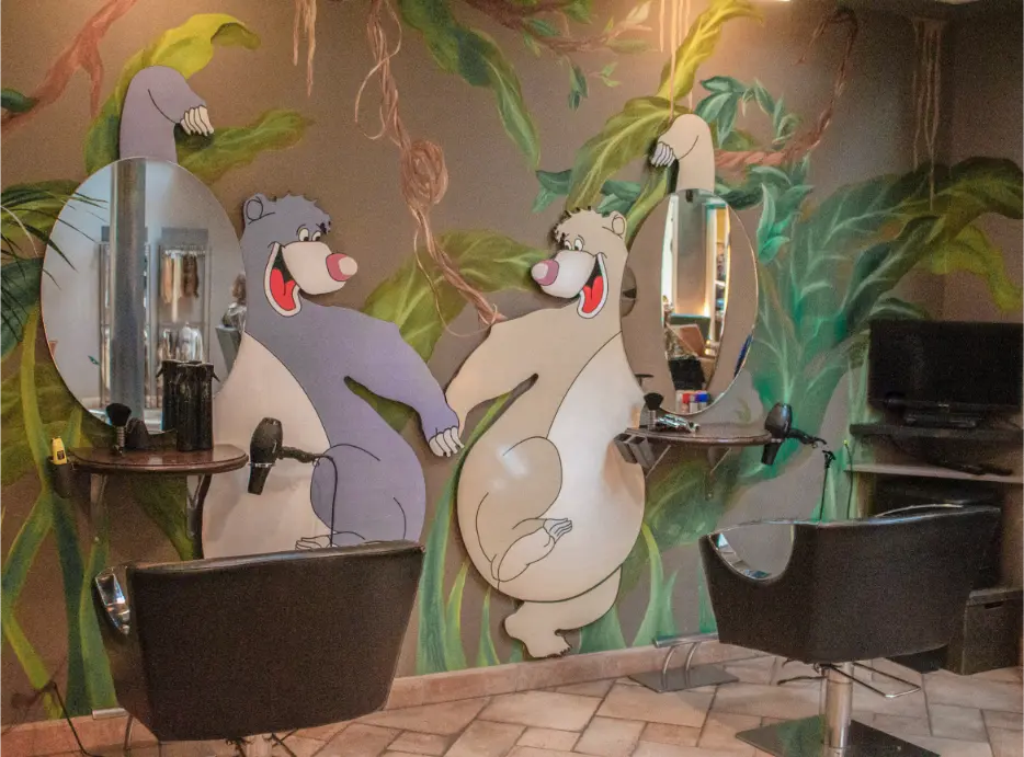Het knippen van de haren mag leuk zijn, ook voor kinderen. In onze junglehoek wordt een kappersbezoek dan ook een feestje. Met beren op de muren en een TV voor de nodige afleiding, maken we het voor kinderen een ontspannen ervaring. Onze kindvriendelijke kapsters nemen de tijd en zorgen dat jouw kind zich op zijn gemak voelt.